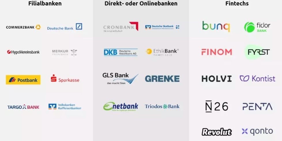 Overview of all available banks for business owners, freelancers, and self-employed in Germany: