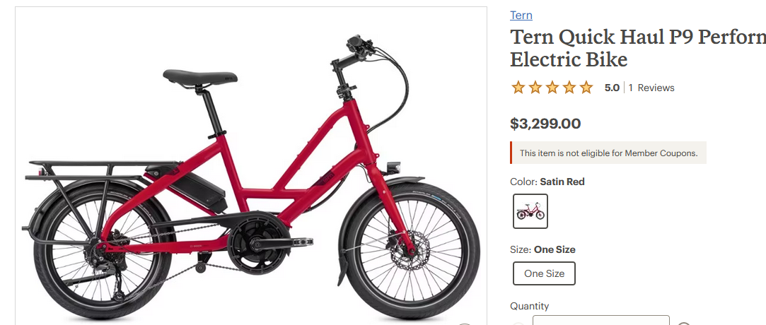 The Tern Quick Haul P9 is priced at $3,299.