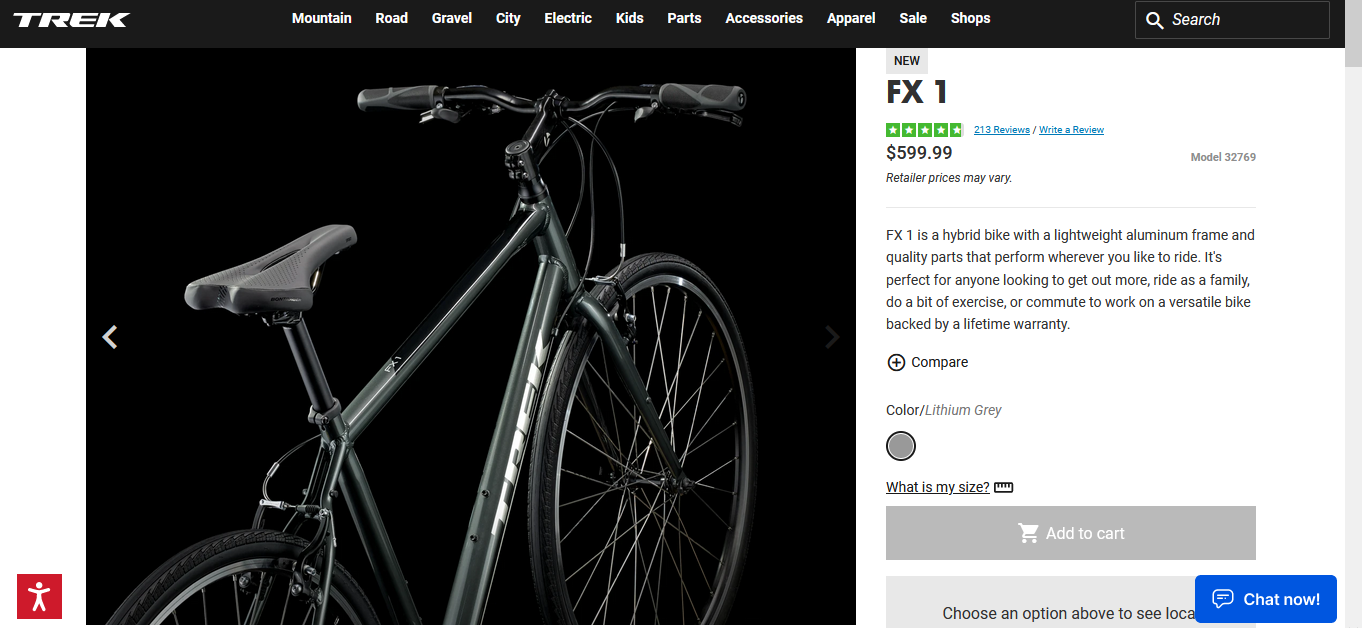 The TREK FX 1 is priced at $599.99.
