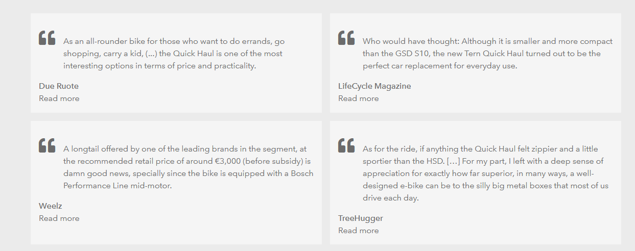 If you require a reliable and efficient electric cargo bike for urban transportation, the Tern Quick Haul P9 is an excellent choice.