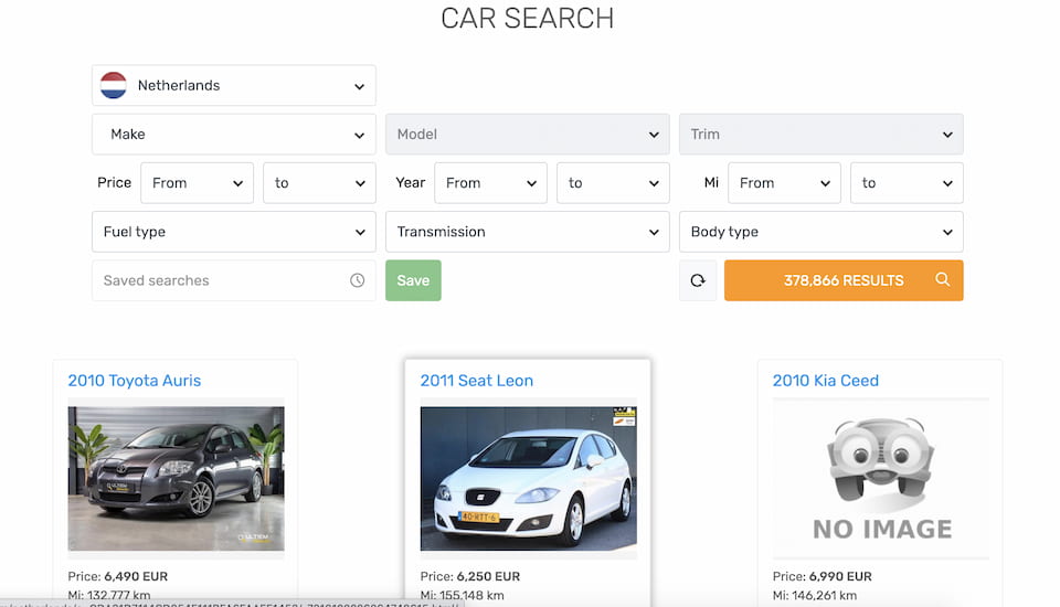 Autotrader.nl has a very simple interface but a significant number of cars to choose from. As of September 2022, there are over 174,000 cars available on the platform.