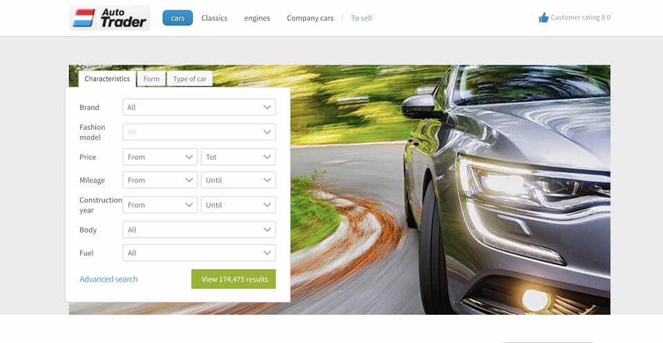 In fact, Autotrack was named the best car website in the Netherlands by its users. The interface and design are clear and easy to navigate. The search is comprehensive, allowing several specific filter options for car metrics.