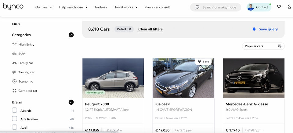 Bynco is among the newest car websites in the Netherlands, allowing you to buy a car entirely online. Nonetheless, it’s already gained high customer satisfaction of 9,1 for the good condition of used vehicles that are offered on the Bynco website.