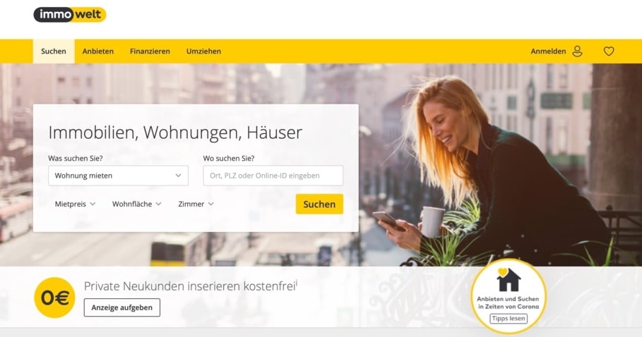 Immowelt.de is the second largest rental platform in Germany after ImmobilienScout24.de. It was founded in 2000. The platform allows you to set your preferences with the help of many filters.
