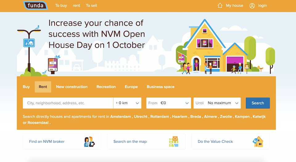 Funda.nl is the number one place to start your search for housing in the Netherlands. It’s a real estate website with more than 20 years of history. Besides, it’s one of the largest websites in the Netherlands, bringing over 5 million visitors every month.