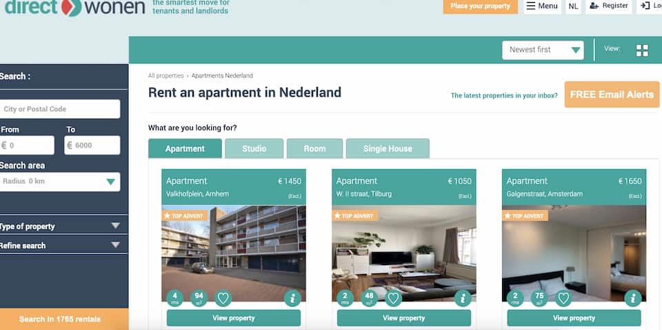 Other real estate websites in the Netherlands include Directwonen.nl, Huis-huren.nl and Huurwoningen.nl.