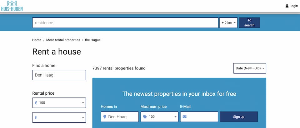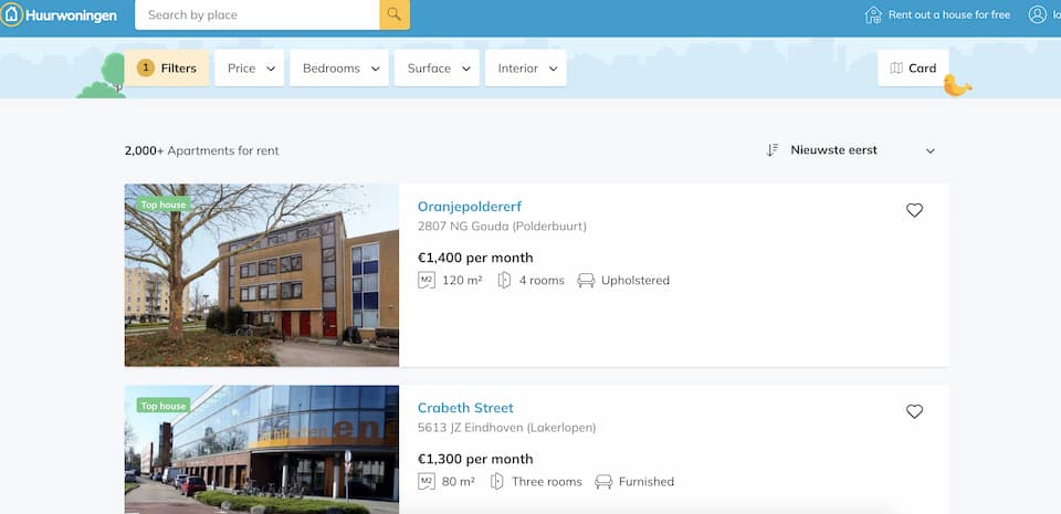 Huurwoningen.nl is another Dutch website where you can find apartments, houses, or rooms for rent. It has only the Dutch language available.