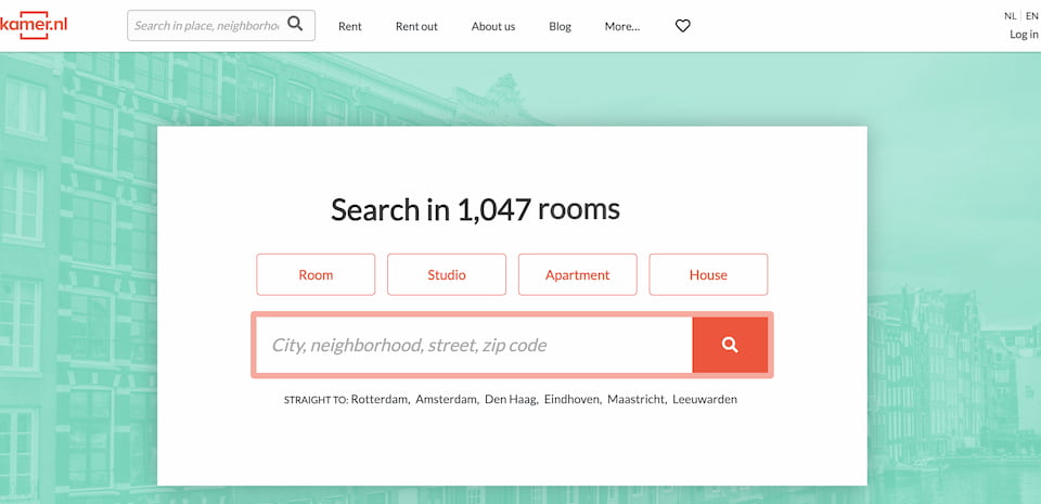 When you will be searching for a room, you will see the word Kamer, which means room in Dutch. That said, the best website to find a suitable room or studio is Kamer.nl.