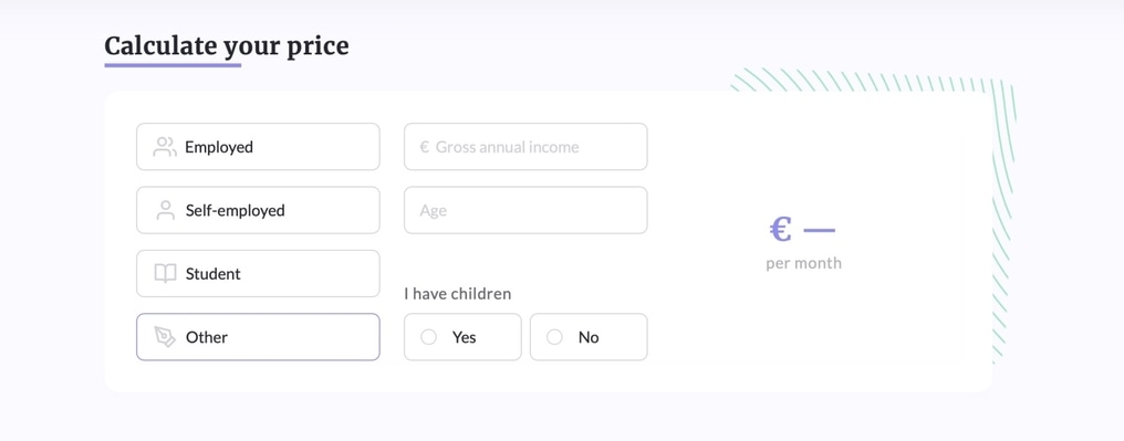 You can also use a price estimator for your German insurance on Feather’s website. As you can see, the price depends on your life situation, and it applies to all insurance providers.
