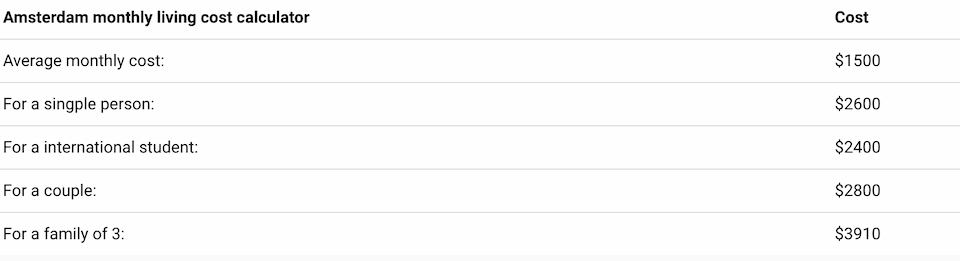 While food and transport may not be a big challenge to fund, housing is high in Amsterdam. You may be forced to look for accommodation on the city’s outskirts where it’s more affordable.