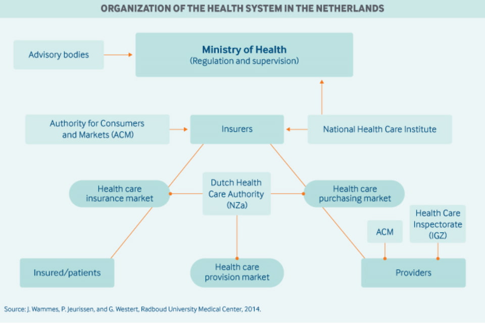 The Netherlands has a well-organized healthcare system where all residents are expected to acquire a health insurance policy from private providers. The public funds the system through premiums and government grants.