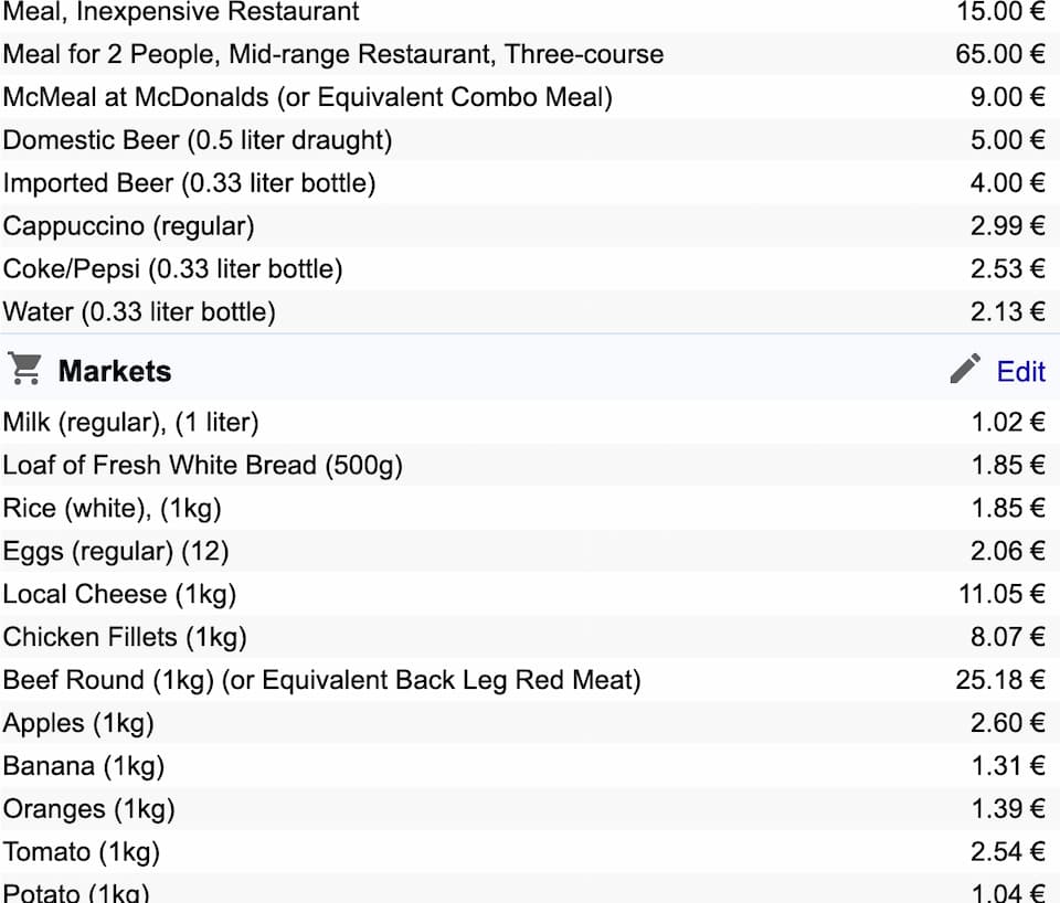 Here is a price breakdown of the everyday groceries and food items in the Netherlands: