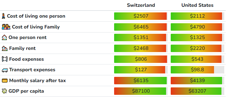Is it cheaper to live in Switzerland or USA?