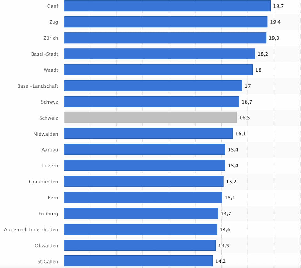 Yet, cantons Geneva, Zurich, and Zug are very close in terms of pricing. Thus, they are the most expensive states to live in.