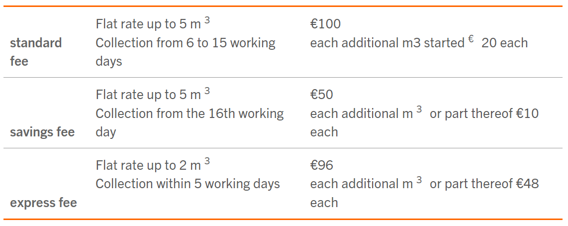 However, if you want to proceed quicker, you can schedule a pick-up with the municipality at an additional fee. The costs and the procedure vary depending on the municipality. In some cities, pick-up happens regularly and free of charge. You just need to leave the furniture on the street prior to that.