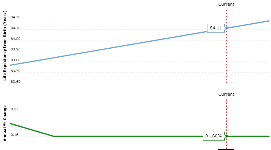 Below is a glimpse of the life expectancy in Switzerland over the last three years: