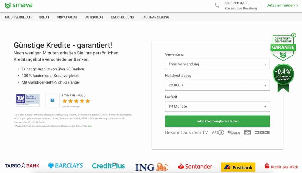 5. Keep in mind that Smava itself doesn’t offer loans but only provides an overview and comparison of different offers.