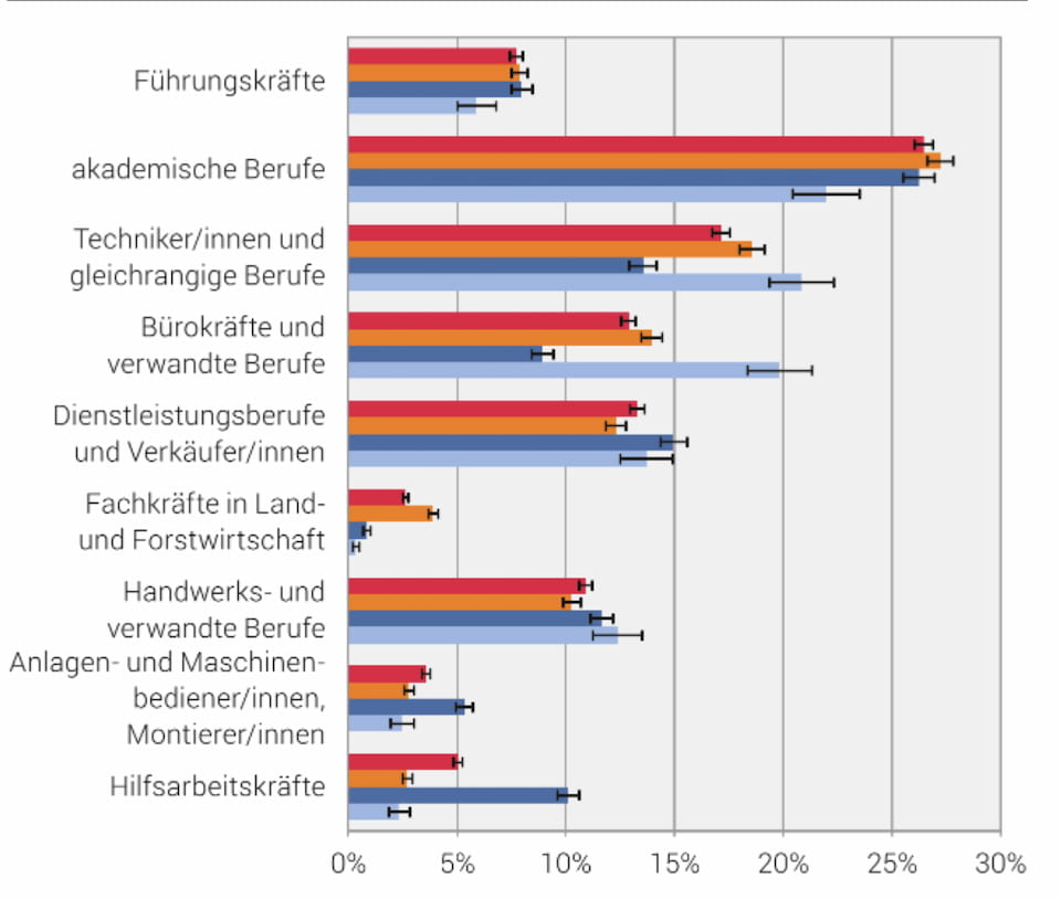 The Swiss labor market has clear distinctions where the majority of people work academic jobs. Here are the percentile proportions (the numbers are approximate):