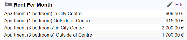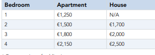 | Type of house | Rent price (EUR) |