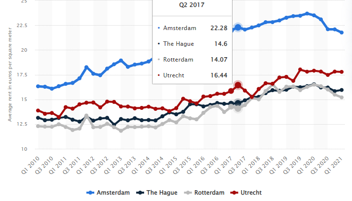Here’s how the rent rates over the last few years compare for different dutch cities