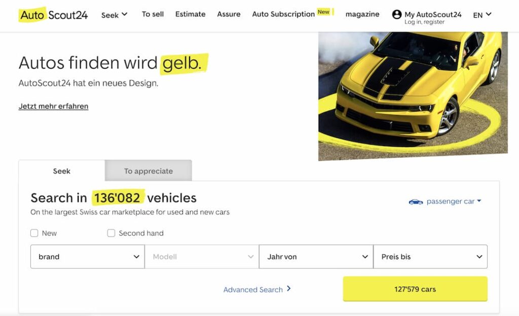 AutoScout24.ch is by far the largest marketplace for finding used or new cars in Switzerland. It’s one of the most popular car websites in Europe.