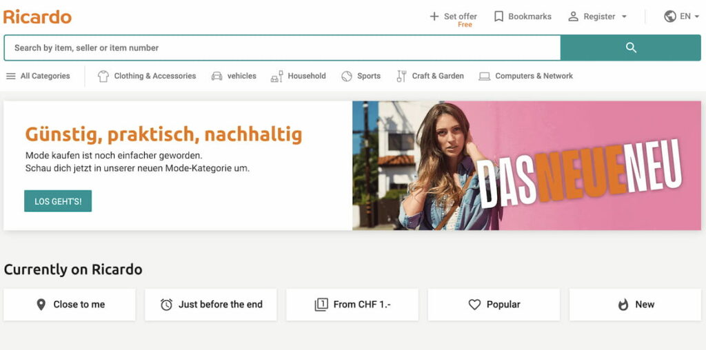 Ricardo is a Swiss eBay where you can find anything from cars and laptops to clothes. It doesn’t have an English version, but German, French and Italian. Currently, about 4,500 vehicles are on sale.