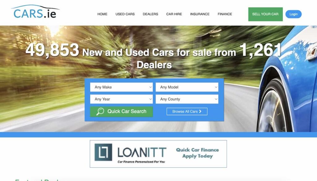 As of September 2022, there are over 49,000 used cars sold on the Cars.ie. On the website, you can apply quick search filters like car brand, model, location in Ireland, etc. The majority of used cars sold on Cars.ie come from dealers.