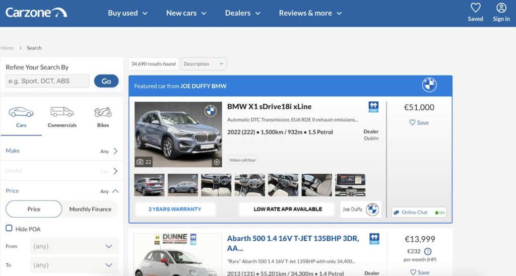 The major benefit of Carzone.ie that you can see not only dealers’ offers but also cars from private sellers. You can even choose the option to see only private deals.