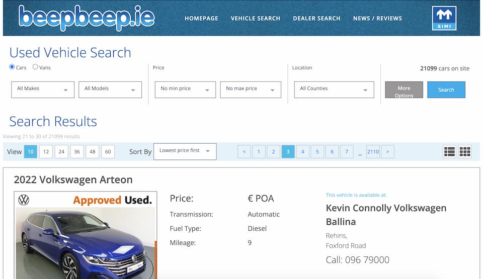 The used car website Beepbeep.ie is the last on our list with over 21,000 used cars on offer. This website lists vehicles only from approved dealerships but no private sellers. In fact, every dealer on Beepbeep.ie is an official member of SIMI (Society of the Irish Motor Industry).