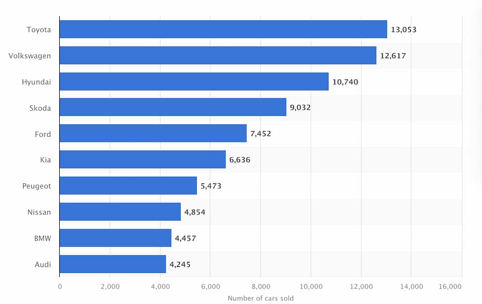 The most-viewed petrol models are mostly hatchback models, including the Volkswagen Golf, Volkswagen Polo and Ford Fiesta.
